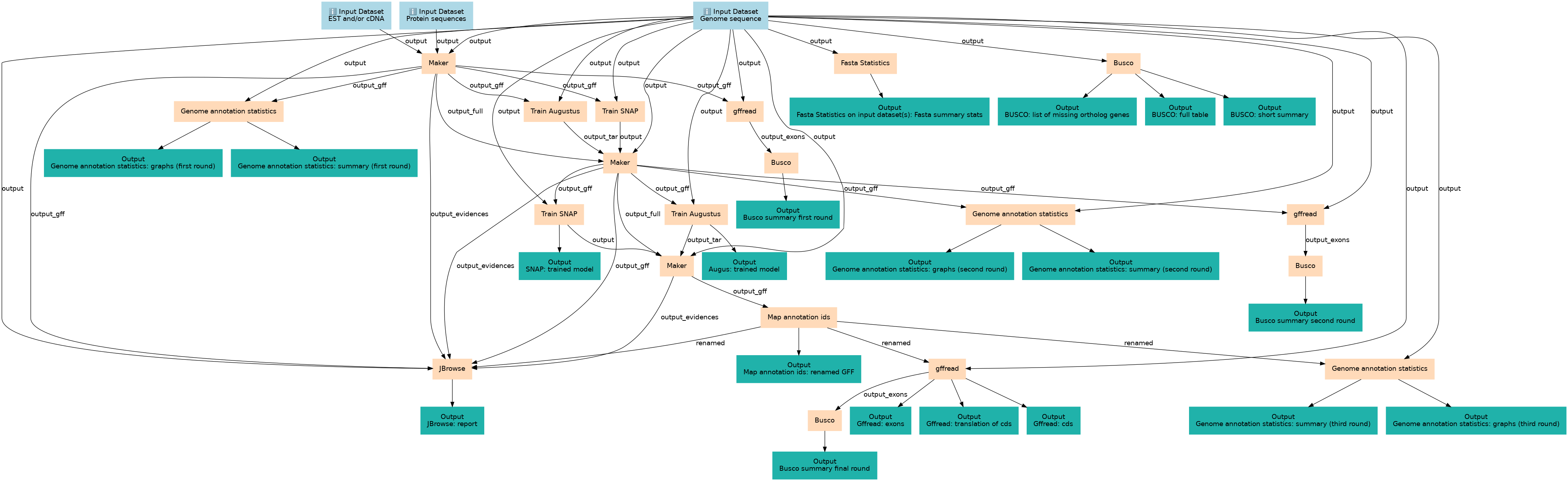 This workflows is part of the tutorial Genome annotation with Maker , available in the GTN
